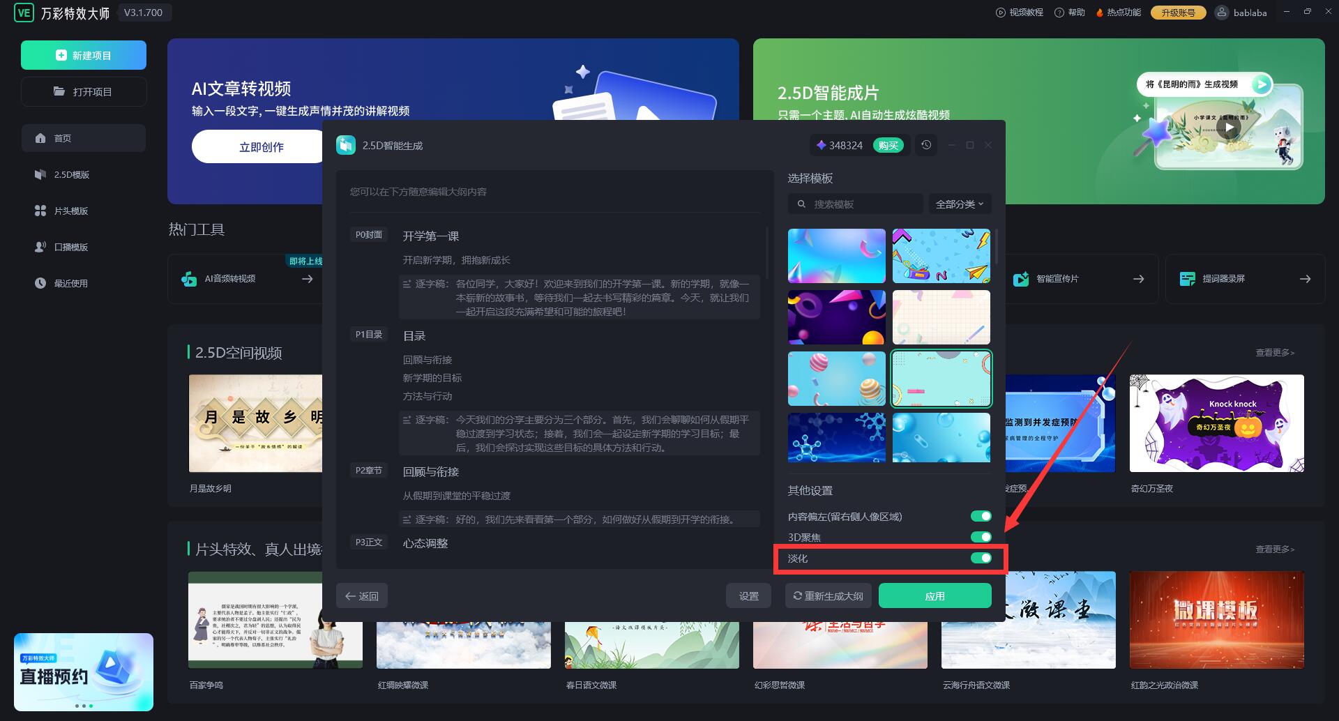 3、2.5D智能成片:一键生成4分钟视频,优化生成视觉效果