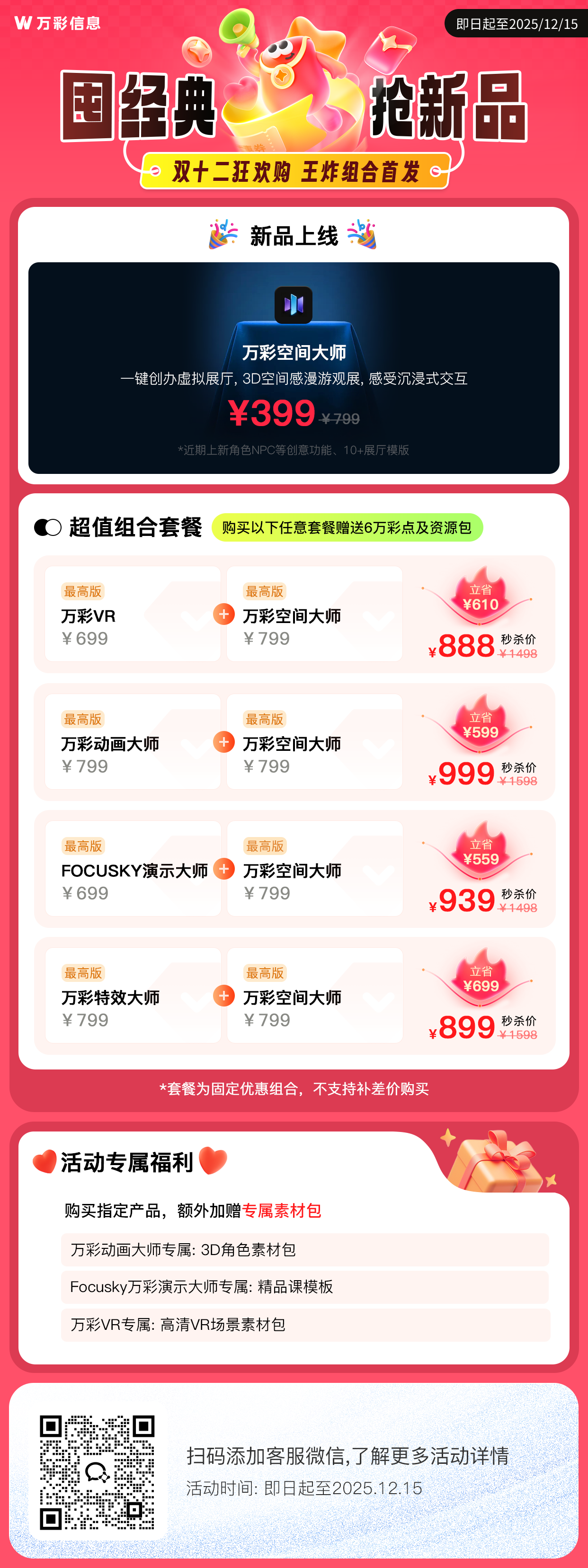 为回馈广大万彩用户的支持与陪伴,本次双十二活动期间,凡是转发此推文并配文: