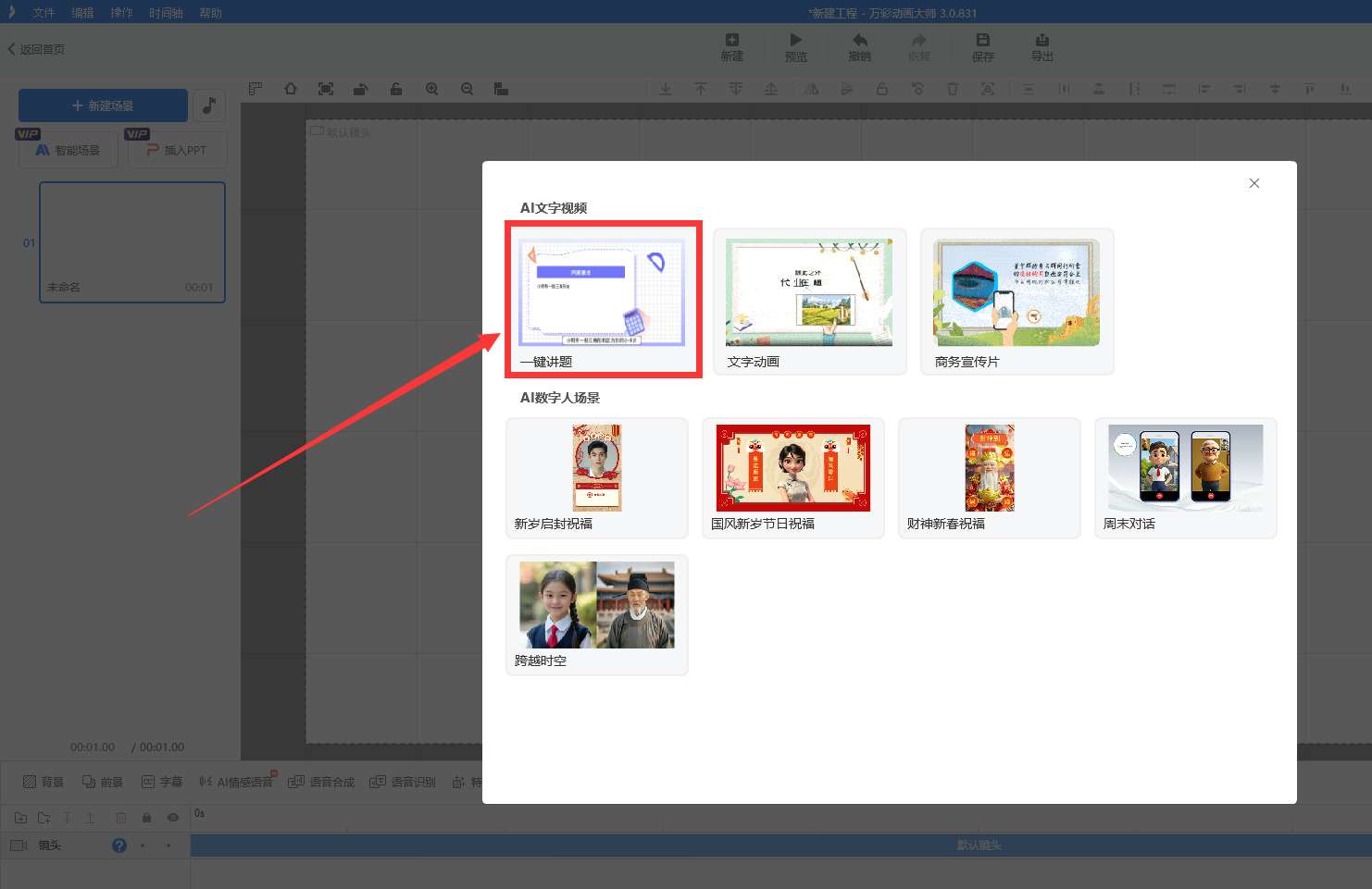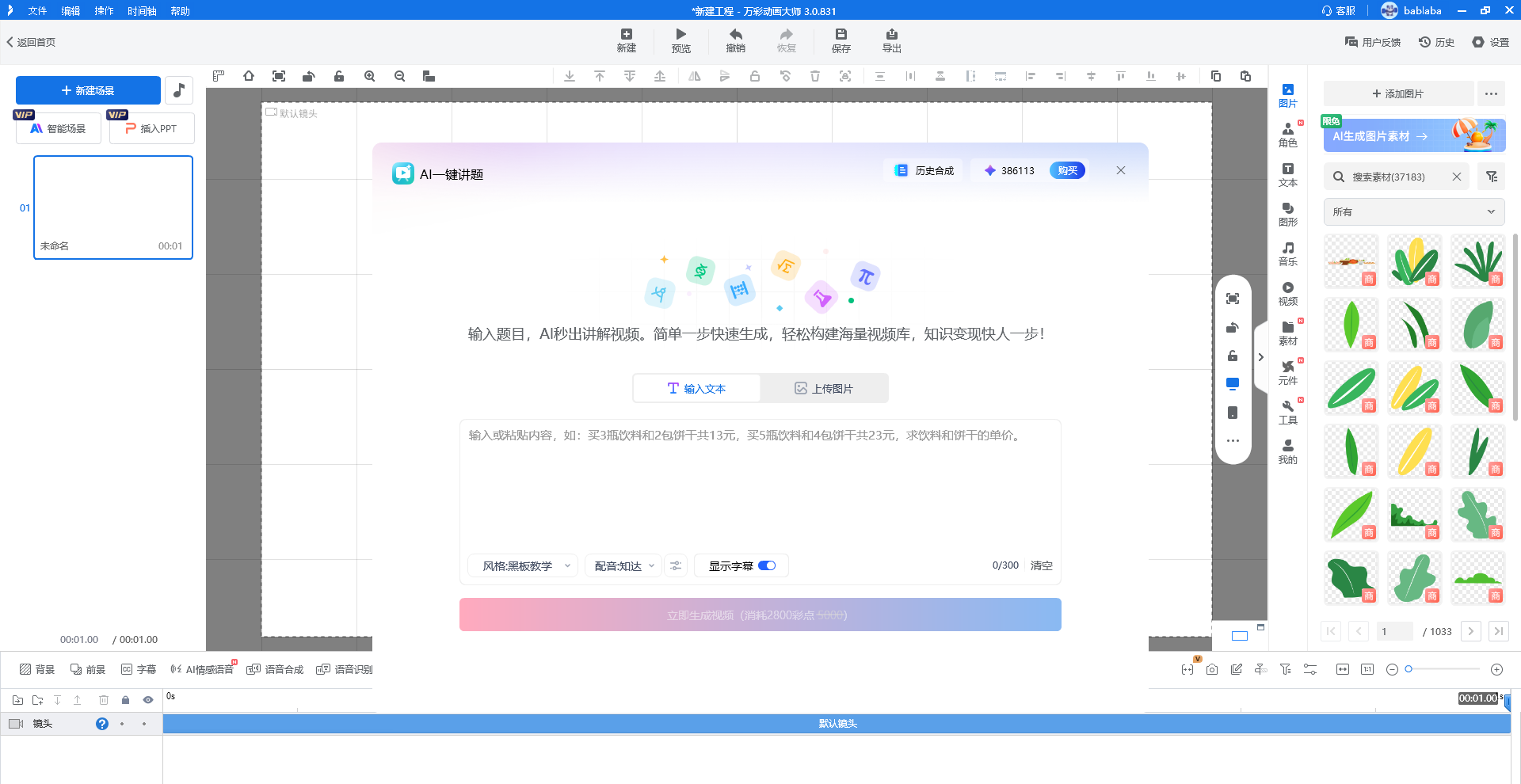 2、【NEW】智能成片:AI一键讲题功能上线!输入题目,AI秒出讲解视频。简单一步快速生成,轻松构建海量视频库,知识变现快人一步