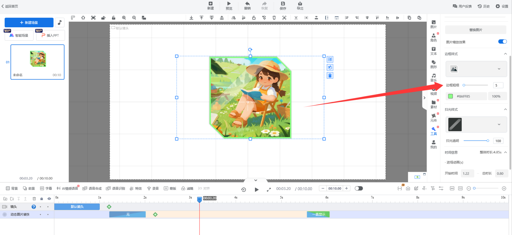 4、【NEW】工具:动态图片装饰功能上线,为图片添加边框、扫光、微微缩放的效果,为静态图片增加呼吸感,适用于重点强调或营造相框氛围