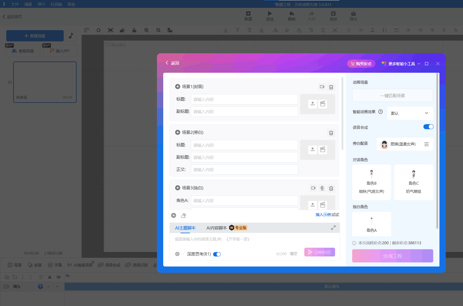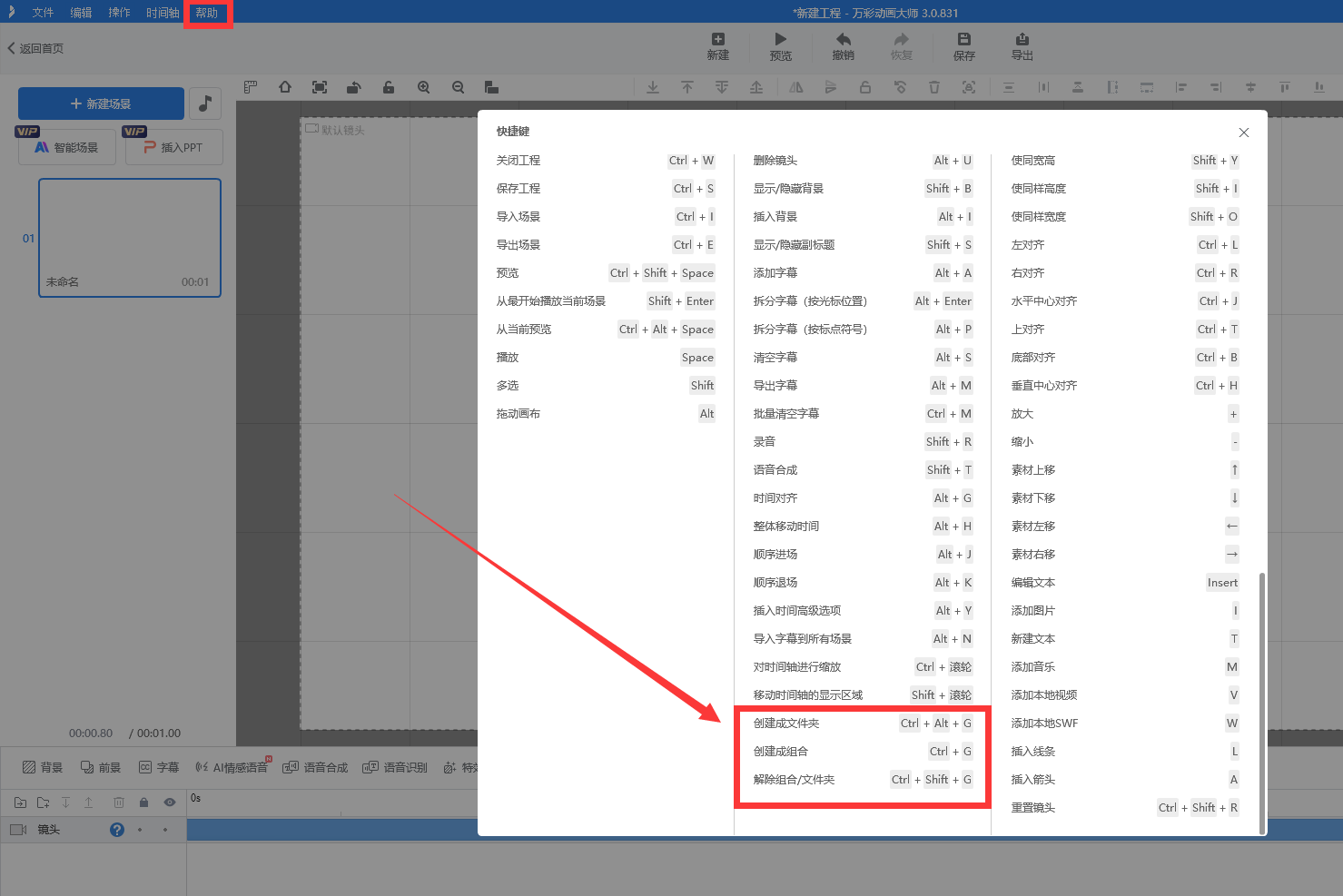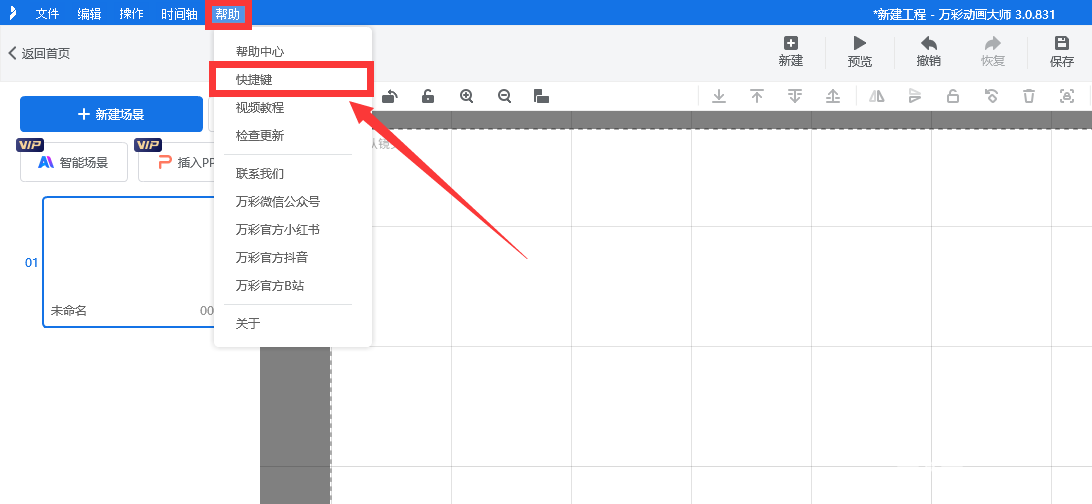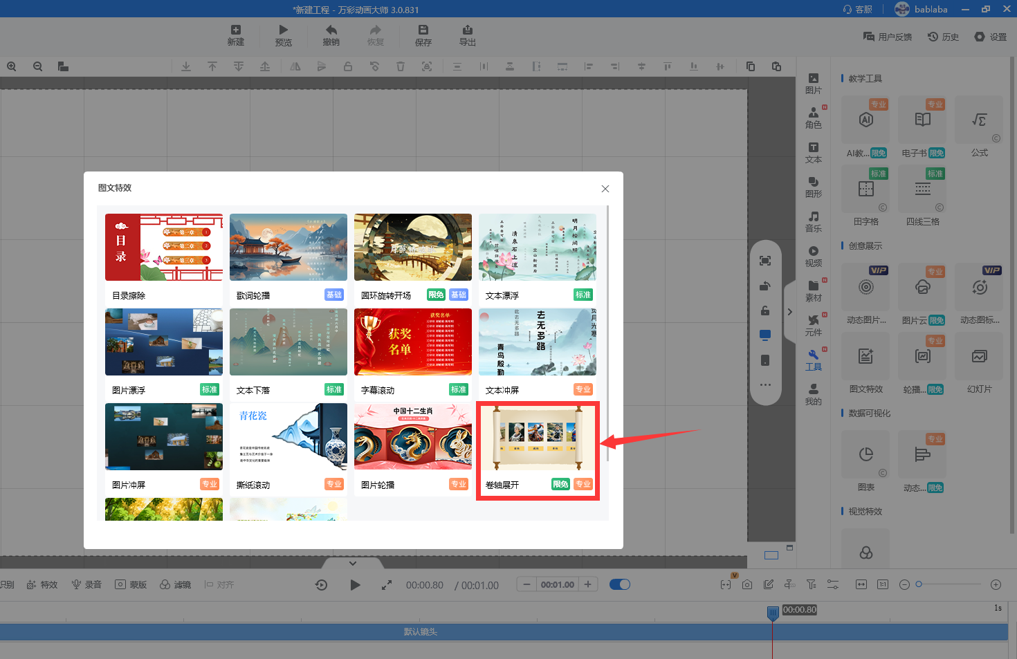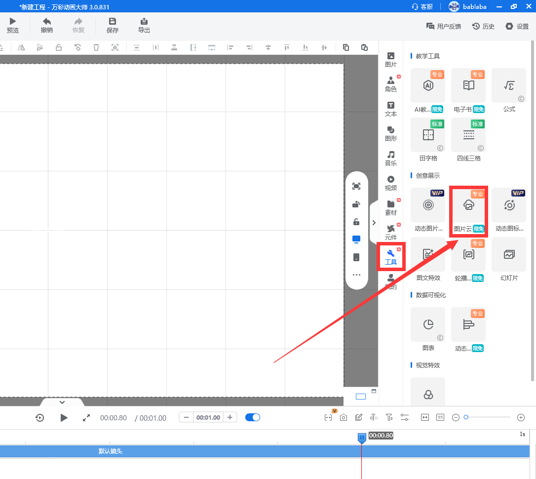 万彩动画大师【win系统】更新到3.0.831版本了,以下是新增的功能图: