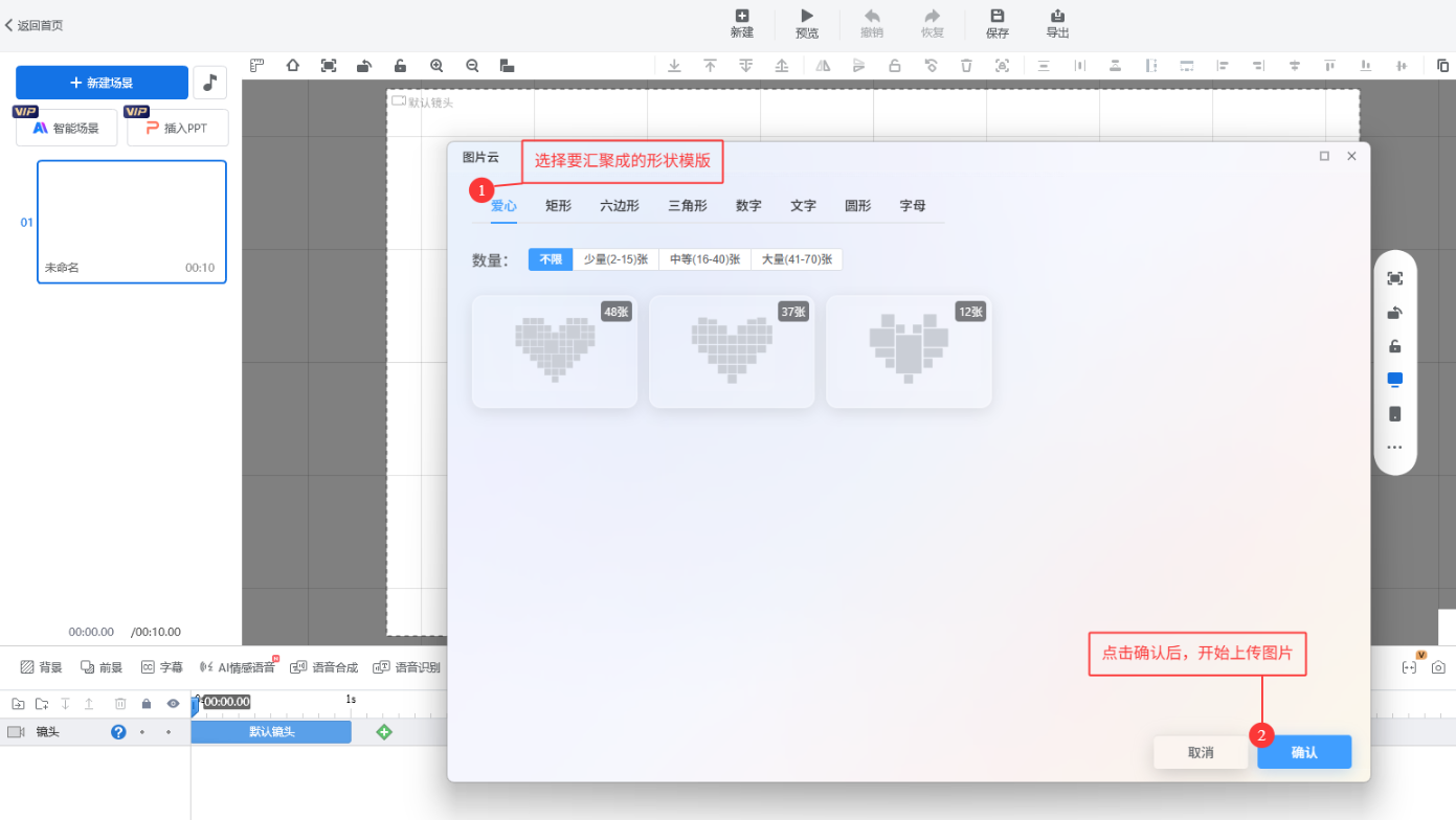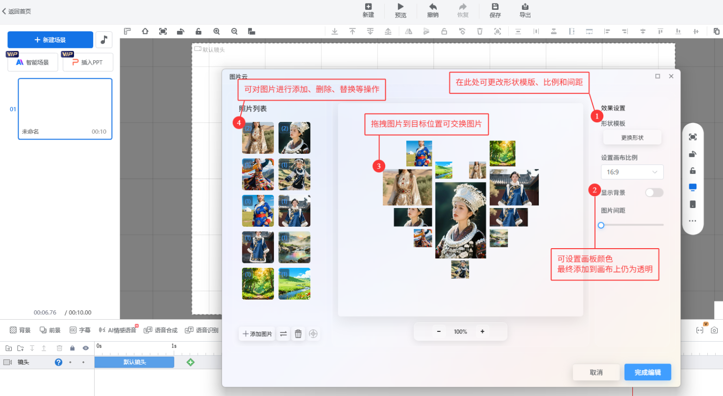 5、【NEW】工具:图片云功能上线,选择形状模版并上传图片,一键生成图片汇聚成形效果,轻松打造视觉焦点