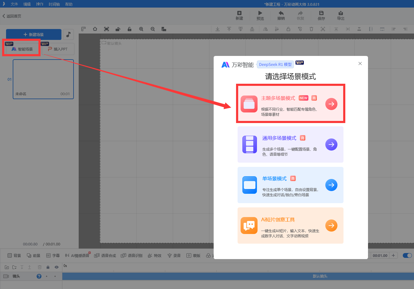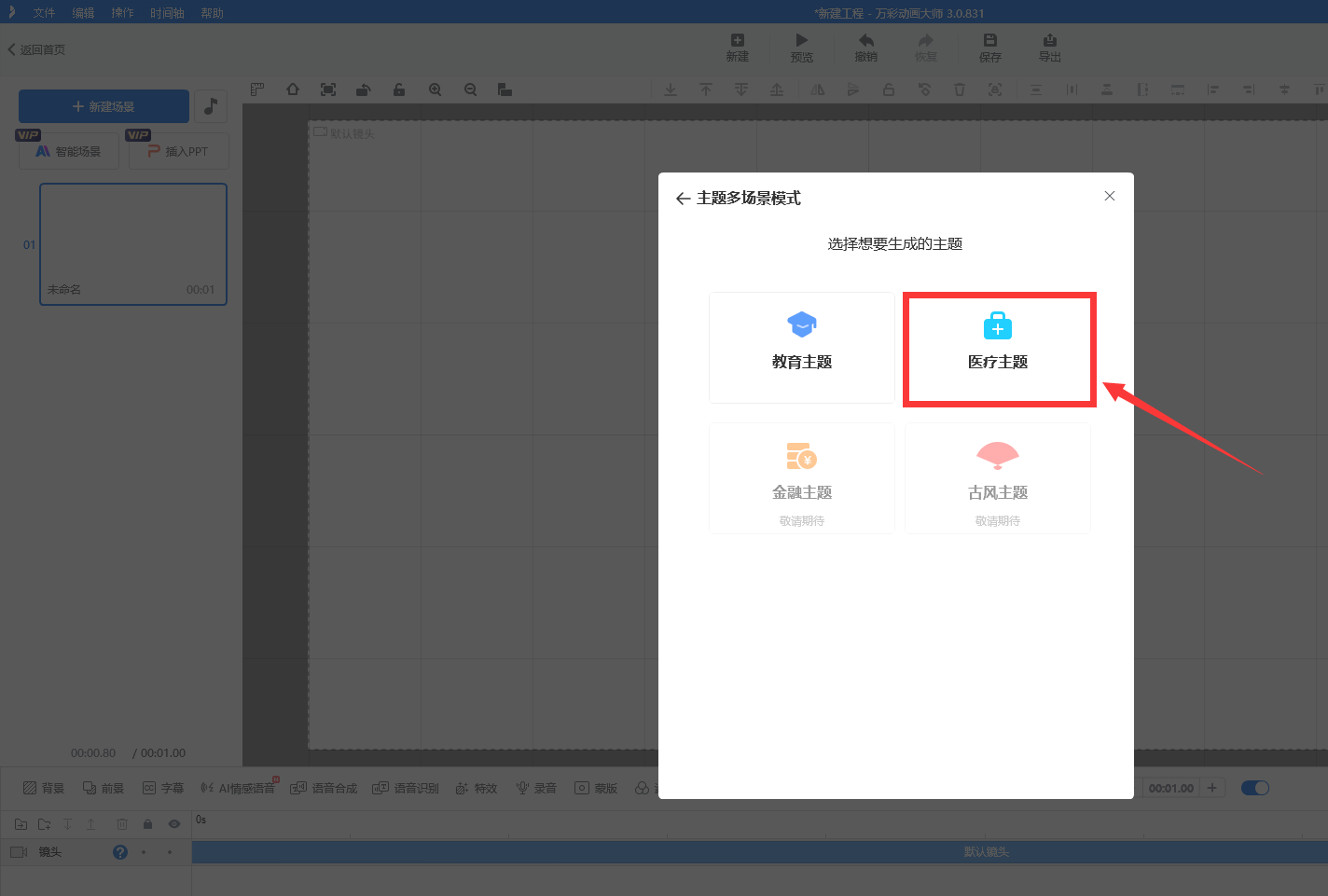 6、智能成片:主题多场景开放【医疗主题】模式,智能匹配专属医疗场景与组件,一键生成工程
