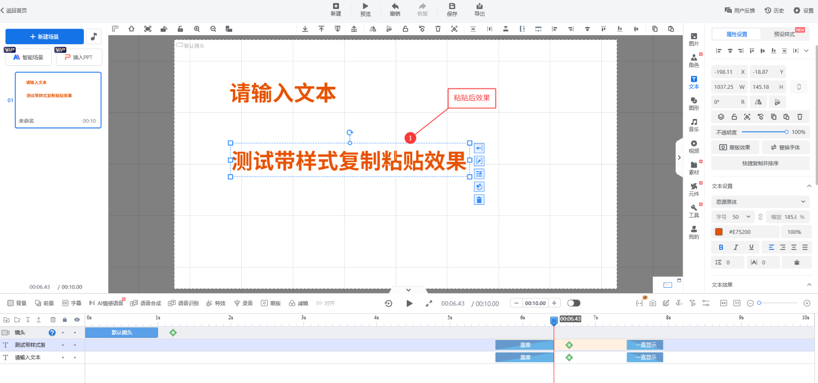 6、操作:修复了跨场景复制粘贴后元素样式不一致的问题