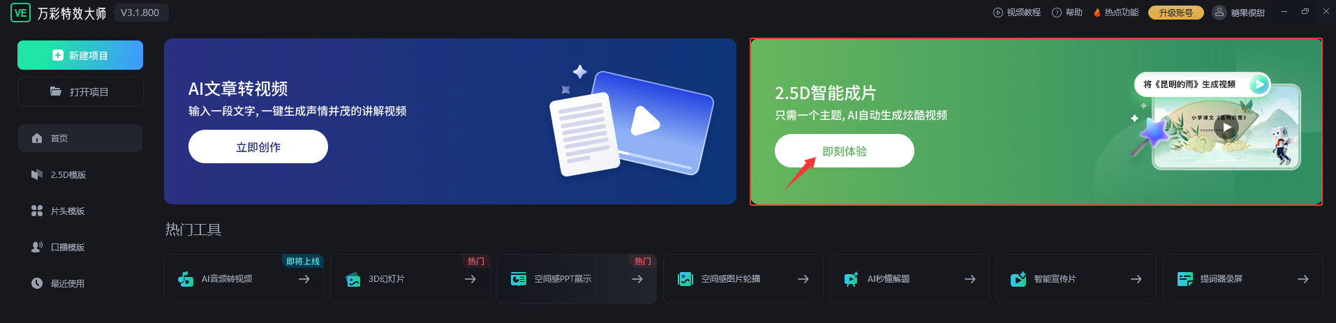 1.打开软件,在主界面点击【2.5D智能生成】。