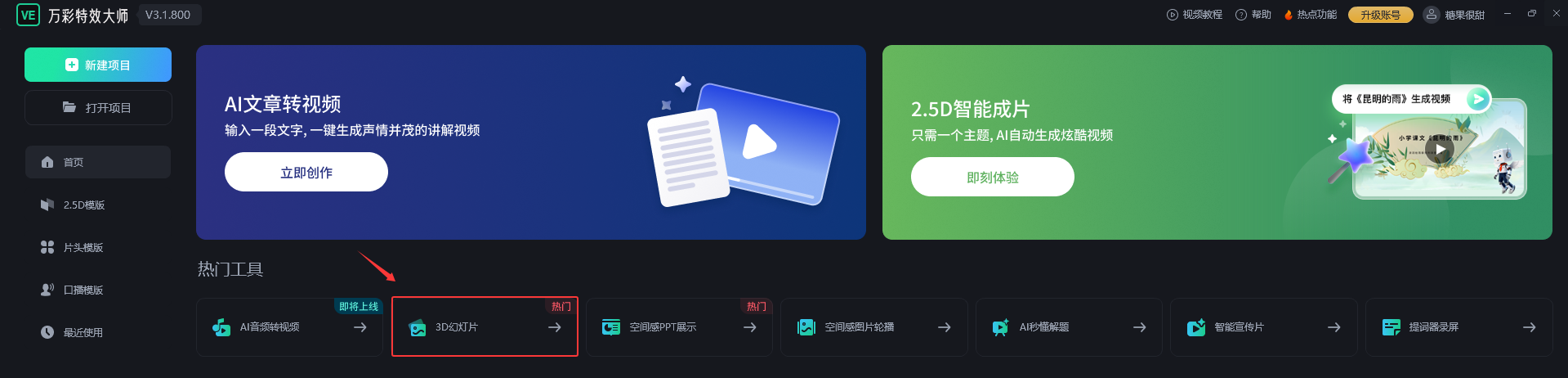 1.打开软件,在主界面点击【3D幻灯片】
