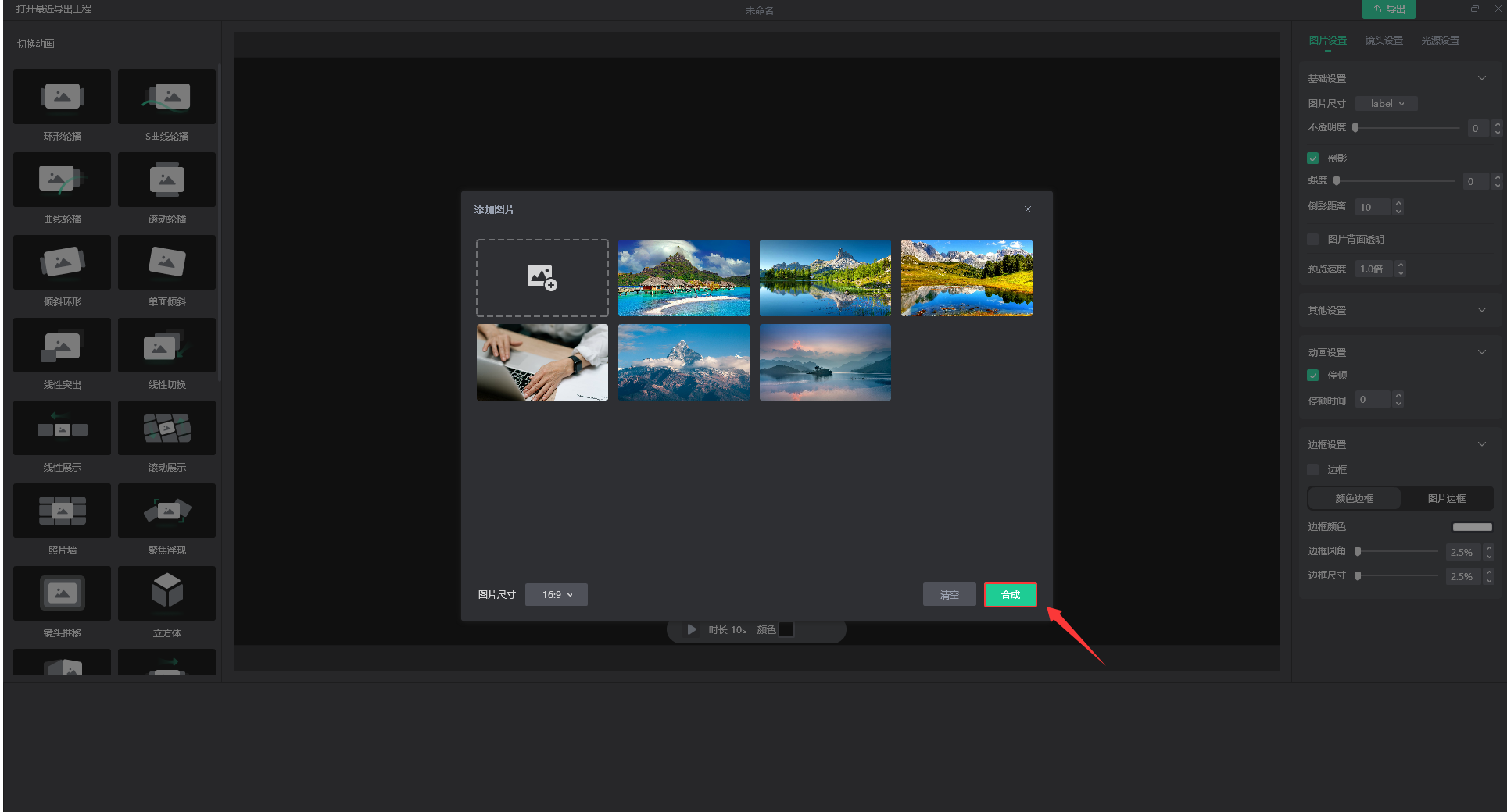 3.添加图片后,点击【合成】