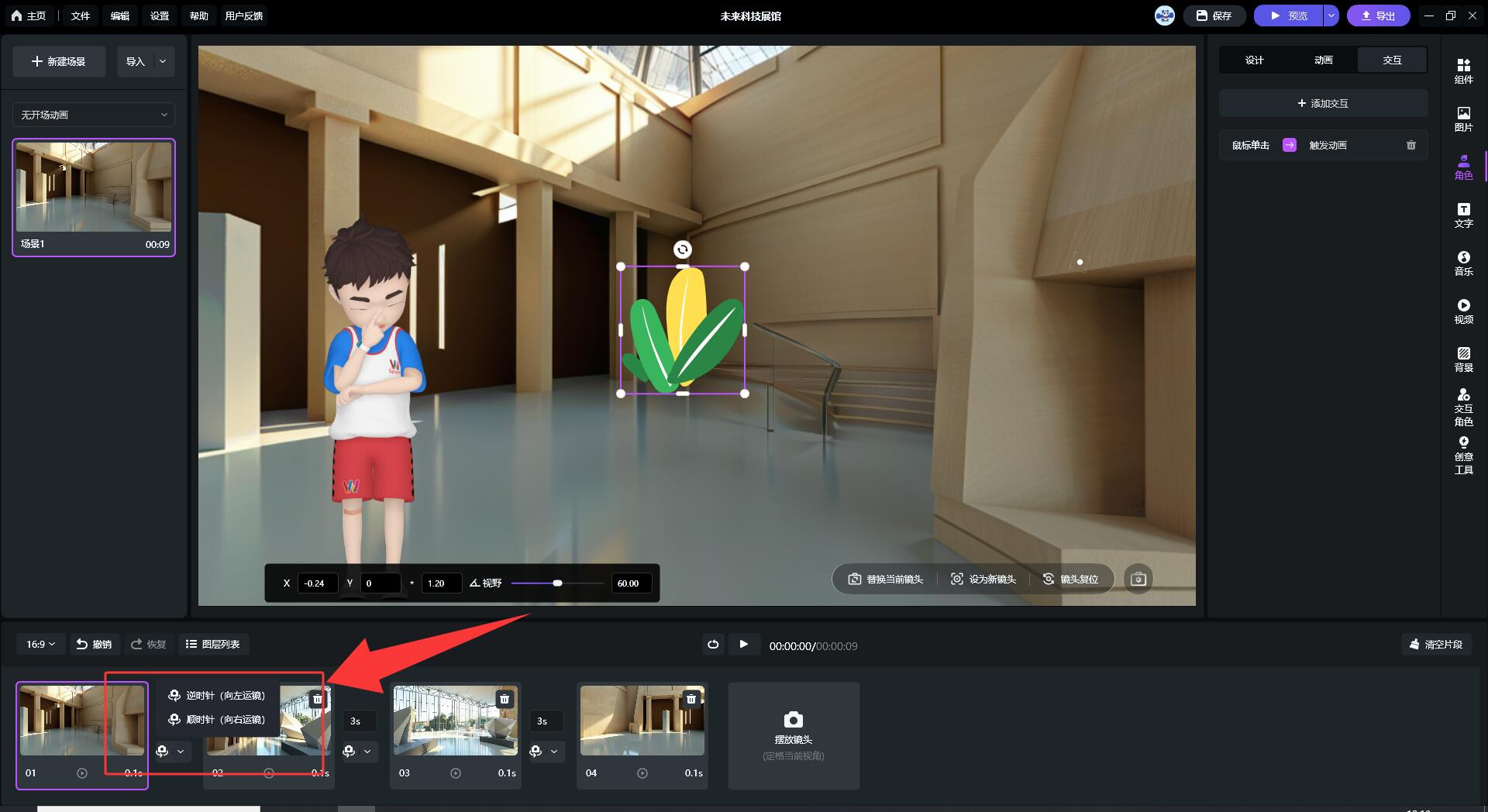 2、操作:镜头支持选择“顺时针(向右运镜)”或“逆时针(向左运镜)”,更方便控制镜头运动方向
