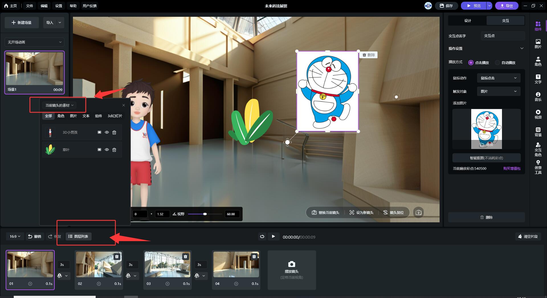 4、图层列表:原“素材列表”,现支持按当前镜头筛选素材和调整图层顺序,提升制作效率